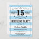 15th Birthday Invitation Blue and White Stripes