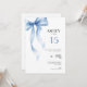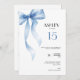 Make your teenager's special day even more memorable with our 15th birthday invitation featuring a beautiful blue bow design. This elegant and classy invitation is an editable template that you can personalize easily, making it perfect for a 15-year-old girl’s celebration party. With its minimalist style and charming watercolor coquette element, this invitation is not only visually appealing but also practical, allowing you to send a stylish blue ribbon invite with just a few clicks. Choose our printable card to ensure that every detail stands out as you invite friends and family to join in the festivities. Celebrate her journey into teenage years with a stunning invite.