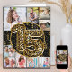 Personalized 15th birthday card with 9 custom photos and trendy leopard print foil balloons in black and gold. The template is ready for you to upload 9 of your favorite photos which are displayed in a photo collage in square and portrait formats. Your pictures surround the animal print balloons, which are decorated with black and gold confetti. You can also add a message inside - or you can leave the inside blank if you prefer to handwrite on arrival.