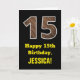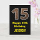 15th Birthday: Name, Faux Wood Grain Pattern "15" Card