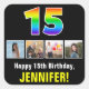 15th Birthday: Rainbow “15”; Custom Photos & Name Square Sticker