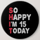 15th Birthday So Happy I'm 15 Today Gift Funny Button