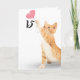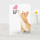 Gold tabby cat with pink heart balloon for 15th birthday on white background.
