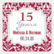 15th Wedding Anniversary Ruby Red Damask A04A. This design with its classic damask pattern makes an elegant choice for a wedding anniversary celebration. Personalize with the couple's names and marriage date.