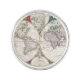 An extremely scarce 1684 double hemisphere world by Dutch map publisher Joachim Bormeester. Depicts the world on hemisphere projection with polar projections to the top and bottom of the main map. Surrounded by allegorical images and border decorations with a classical theme. Heavily based upon, but much rarer than, the Visscher world map of 1658, with similar cartography and Nicholas Berchem’s border designs.