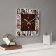 16 Photo Collage Red Faux Wood Fence Square Wall Clock
