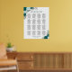 Make your wedding seating arrangements a breeze with this gorgeous 16 table seating chart! The rustic boho chic design features hand painted watercolor roses in shades of teal, turquoise, aqua, and cyan, along with lush eucalyptus leaves and garden foliage. With seating assignments for up to 160 people and 10 seats per table, our chart is the perfect addition to your big day. And with an elegant script calligraphy title and space for the names of the couple and wedding date at the bottom, this seating chart is a beautiful keepsake to cherish for years to come. Get ready to impress your guests with this must-have wedding accessory!