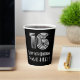 This vintage appearance and Roaring Twenties inspired birthday-themed paper cup design features a large art deco inspired look number “16”, in addition to the birthday greeting message “Happy 16th Birthday,” and an editable name. The background is colored black. Paper cups like this might be used when celebrating somebody’s sixteenth birthday. [~Z0000542]