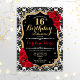 16th Birthday - Black Gold Red Roses Invitation