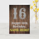 This western look and country inspired birthday-themed greeting card design features a large rustic inspired number "16", the message "Happy 16th Birthday,", a customizable name, and a faux/imitation wood grain inspired style pattern background. The inside has an editable birthday greeting message, or could perhaps be cleared and left blank if a message is to be written by hand instead. A customized birthday greeting card like this might be a fun way to deliver some birthday wishes to somebody who is celebrating their sixteenth birthday. [~Z0000469]