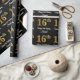 This sophisticated, stylish, and luxurious birthday themed wrapping paper design features a large ordinal number “16th” having an imitation/faux gold-inspired gradient pattern, along with the birthday greeting message “Happy 16th Birthday,” and an editable recipient name in a script-style font. The background is colored black. Luxurious birthday themed wrapping paper like this might be used when giving a gift or present in celebration of somebody’s sixteenth birthday. [~Z0000515]
