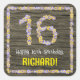 This fun, rustic, botany-inspired birthday-themed square sticker design features the message “Happy 16th Birthday,” and a customizable recipient name. The large number “16” and the border both feature flower icons. The background features an imitation/faux woodgrain look pattern. Stickers like these might be used when celebrating somebody’s sixteenth birthday. [~Z0000654]