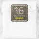 16th Birthday: Floral Number, Faux Wood Look, Name Square Sticker