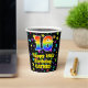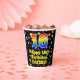 This cheerful and exciting birthday-themed paper cup design features a large number “16” having a rainbow spectrum gradient inspired pattern. It also features the message “Happy 16th Birthday,”, and an editable name. The background features a colorful pattern having many star shapes with different sizes and colors. Vibrant, colorful paper cups like this might be fun to have at a birthday party being held to honor somebody’s sixteenth birthday. [~Z0000540]