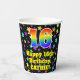 16th Birthday: Fun Stars Pattern and Rainbow 16 Paper Cups