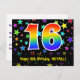 16th Birthday: Fun Stars Pattern, Rainbow 16, Name Postcard