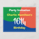 invitation for a special birthday party with name, and number of years. Party invitation postcard for a 16 year old