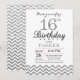 16th Birthday Invitation Silver Glitter