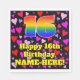This joyful and happy birthday themed paper napkin design features a large number “16” having a rainbow spectrum gradient inspired pattern. It also features the message “Happy 16th Birthday,”, and a customizable name. The background features a pattern of red, purple, and pink heart shapes. Loving, happy paper napkins like this might be fun to use at a birthday celebration being held to honor somebody’s 16th birthday. [~Z0000550]
