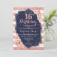 16th Birthday - Navy Rose Gold and White Stripes Invitation