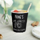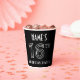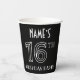 This stylish 1920s/1930s era inspired art deco style birthday paper cup design has a personalized name, along with the message “16TH BIRTHDAY PARTY!”. The number “16TH” has a fancy geometric lined styling. Luxurious birthday themed paper cups like these might be used at a party in celebration of somebody’s sixteenth birthday, or some other 16th event. [~Z0000658]
