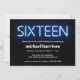 16th Birthday Party Blue Neon Lights Invitation
