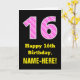 16th Birthday: Pink Stripes and Hearts "16" + Name Card