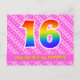 16th Birthday: Pink Stripes & Hearts, Rainbow 16 Postcard