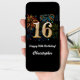 16th Birthday Rainbow Fireworks Black and Gold Card