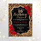 16th Birthday - Red Roses Leopard Print Invitation