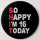 16th Birthday So Happy I'm 16 Today Gift Funny Button
