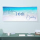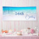 An enticing beach scene is the background for this Sweet Sixteen Beach Party birthday design. Ocean and sky blues are the main colors giving the design a fresh outside beach feel. All the information easily replaced for your own custom banner.