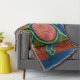 A quality printed throw has its advantages. This is a much finer weave throw than its loopier cousins, and though lighter, it is worth the investment for custom room accessorizing. The back is much prettier than the typical brown, and the fringe on the long sides very vivid, the selvage nicely done. Before photographing, I washed the throw in cold water, delicate, with a thicker woven throw the same size. On tumble dry low, this throw was dry in half the time as the other. This is a very practical quality if you use throws for furniture covers or to wrap up in frequently. The sleekness of the fabric makes it a great layer for accenting or protecting without the feeling of sitting on too much stuff. Perfect for napping or when you feel a light chill coming on. The color printing is beautiful and on this fabric, matched the design and color of my Photoshop image. This is an advantage for blending room fabrics and colors. The fringe on the short sides prints the colors from the design image and therefore varies from the side fringe. I streaked a white fractal line through the plaid pattern to give the illusion of weaving. This printed as crisp as an illusory thread, and put some white in the short side fringe, showing another advantage of print vs loomed- for artistic purposes, line lines, detail, and color integrity can be planned and preserved. My loomed throws have color limitations and more of a needlepoint texture. Print throws reproduce an exact image. The throw felt a little stiff straight out of the package, but this went away in the first delicate wash. Of course I searched the wash water for ink or bleeding and there was none.
