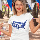 This fun blue and white unisex t-shirt has patriotic white stars on a blue map of the United States. On top of the country is the year 1776. It’s a great design for the 4th of July!