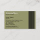 A Business card template with a simple clear dern layout decorated on the right edge with a tif made up of seventeen vertical strait lines which balances the text. The reverse side of the card has the same decorative tif but the text area has been left blank. This can be left as it is to use as a handy area for notes etc or customized with additional text. The decorations can also be cleared or replaced. You can also add additional graphics e.g. a logo. The text and background colors can also be customized. This template is also available in a variety of other color combinations. Suitable and can be adapted for st businesses.