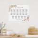 This beautiful 17 table seating chart will add rustic charm, style, and beauty to your wedding reception. It features a lovely boho chic design with hand painted watercolor roses, blossoms, and flowers in shades of blush pink, dusty rose, ivory, and mauve along with sprigs of eucalyptus leaves and garden greenery. Has seating assignments for up to 170 guests with 10 seats per table. The title is printed in elegant script calligraphy and there is space for the names of the couple and wedding date at the bottom. Wonderful way to add elegance and grace while making it easy for your guests to find their seats.