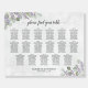 This beautiful 17 table wedding seating chart features a traditional layout with room for 170 guests (10 seats per table) printed on a foam core board which is sturdy enough to stand up on its own without the use of a frame. The hand painted design features sage green eucalyptus leaves , lavender flowers and garden greenery, with an elegant script calligraphy title. The names of the couple and wedding date are displayed at the bottom. Wonderful way to add rustic beauty and style to your wedding reception while making it easy for your guests to find their assigned tables.