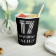 This 1920s/1930s style inspired and vintage look birthday themed paper cup design features a large art deco inspired style number “17”, in addition to the birthday greeting message “Happy 17th Birthday,” and an editable name. The background is colored black. Paper cups like this might be used when celebrating somebody’s seventeenth birthday. [~Z0000542]