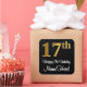 This elegant, stylish, and luxurious birthday square sticker design features a large ordinal number “17th” having a faux/imitation gold-like look, in addition to the birthday greeting message “Happy 17th Birthday,” and an editable name in a script-style font. The background is colored black. Sophisticated birthday-themed stickers like this might be used when giving a gift or present in celebration of somebody’s seventeenth birthday, or perhaps might be given out to the guests at a birthday celebration or party. [~Z0000517]