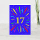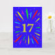 An explosive 17th birthday card! What a wonderful way to send birthday greetings. The number 17 in bright yellow with an explosion of bright colors and stars.