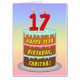 17th Birthday: Fun Cake & Candles, w/ Custom Name Card