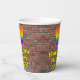 This exciting and fun urban graffiti and street art inspired birthday paper cup design features a large number “17” having a colorful rainbow spectrum gradient inspired pattern. It also features the message “Happy 17th Birthday,”, and a custom name. The background features a brick wall pattern. Colorful, vibrant paper cups like this might be fun to have at a birthday celebration being held to celebrate somebody’s 17th birthday. [~Z0000543]