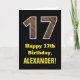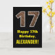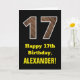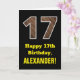 17th Birthday: Name, Faux Wood Grain Pattern "17" Card