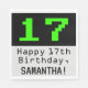 This nerdy and geeky birthday-themed paper napkin design features a large green retro video game style number "17" on a black colored background. It also features the birthday greeting message "Happy 17th Birthday,", and an editable name. Birthday themed paper napkins like this might be fun to use at a celebration being held to honor somebody who is celebrating their seventeenth birthday. [~Z0000404]