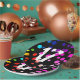 Neon rainbow dot pattern on black background for 17th birthday party.