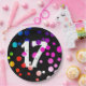 17th Birthday Rainbow Dots on Black Paper Plates