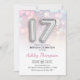17th Birthday - Silver Balloons Pink Lights Invitation