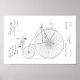 1885 Vintage high wheeler or Penny farthing bicycle, bike. This U.S. patent drawing has been restored and enhanced so it looks great on small prints to wall posters for framed art.