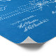 Blue technical design paper background with white line drawing.
