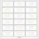 Easy to personalize online before ordering, this sticker is designed with 18 individual labels on it. Each label has a classic look featuring text in a golden shade of beige (faux gold / gold look) on a clean traditional white background (or a clear background if you choose "Glossy Transparent" for the media rather than the "Matte White"). Each label on the 14" x 14" sticker is easy to read; each of the 18 individual labels is approximately around 4.3" x 2.1". Please note that the design may take a while to update on screen when you apply each change to the personalization, so please check that your personalization changes have updated on screen before ordering.